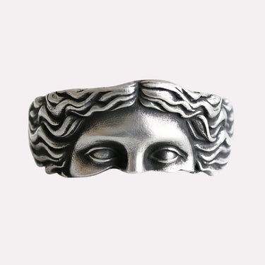 Inspirée par Aphrodite, la déesse grecque de l’amour, de la beauté et du désir, cette bague capture l’essence divine du charme et de la séduction. Son design sculpté met en valeur une chevelure ondoyante et des yeux sereins, évoquant la grâce intemporelle de la déesse et son pouvoir d’envoûter tous ceux qui la contemplent.