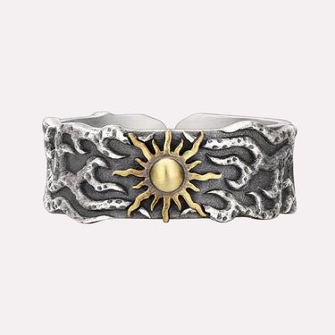 Inspirée par Hélios, le dieu grec qui menait son char doré à travers le ciel, cette bague méticuleusement façonnée capture toute la splendeur et la puissance du soleil éternel. En son centre brille un soleil d’or éclatant, posé sur un anneau robuste qui évoque l’énergie ardente de ses rayons qui se déploient.